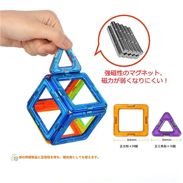 短納期 送料無料 磁石ブロック ネットブロック 40ピース 磁気おもちゃ ピタゴラスおもちゃ 知育玩具 学習玩具 オモチャ 積み木 男の子 図形 組み立て 女の子 贈り物