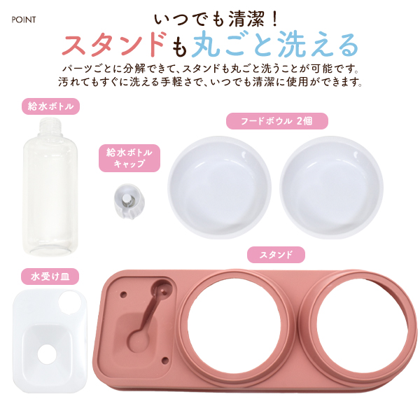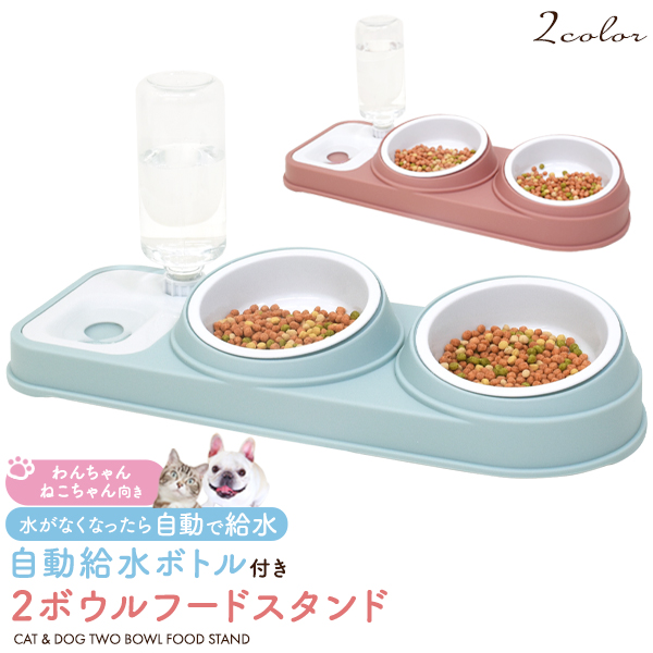ペットフードスタンド 自動給水ボトル付き 2ボウルフードスタンド ペット餌台 小型犬用 中型犬用 猫用 イヌ ネコ 丸洗い可能 洗える 2種類のご飯 ペット用品 餌用 ごはん用 お皿 シンプル オシャレ かわいい エサ入れ 自動で給水 フードスタンド 送料無料