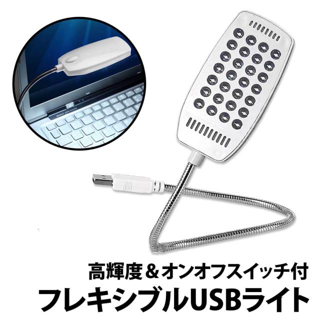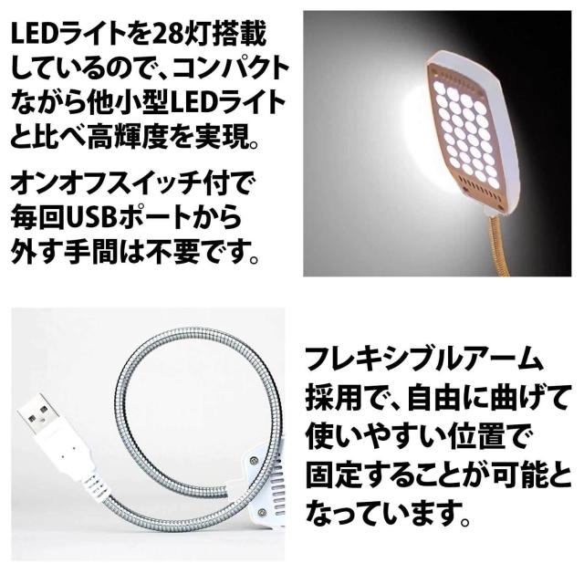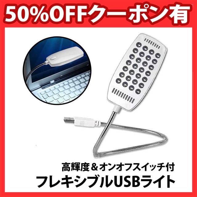 50%offクーポン有 フレキシブル USBライト LEDライト 28LED 卓上ライト スイッチ付き フレキシブルアーム デスクライト 読書灯 モバイルバッテリー パソコン USB 白 ホワイト シルバー 車 バッテリー ポータブル電源 非常用 読書灯 ブックライト