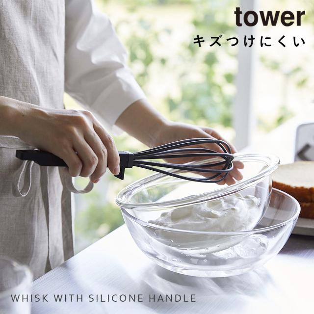 泡立て器 シリコーン 食洗機対応 先端がつかない 時短 調理 キッチングッズ アイデア 便利グッズ tower 山崎実業 シリコーンハンドル 泡立て器 タワー