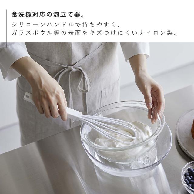 ガラスボウル等の表面をキズつけにくいナイロン製の泡立て器。食器洗い乾燥機対応の泡立て器。