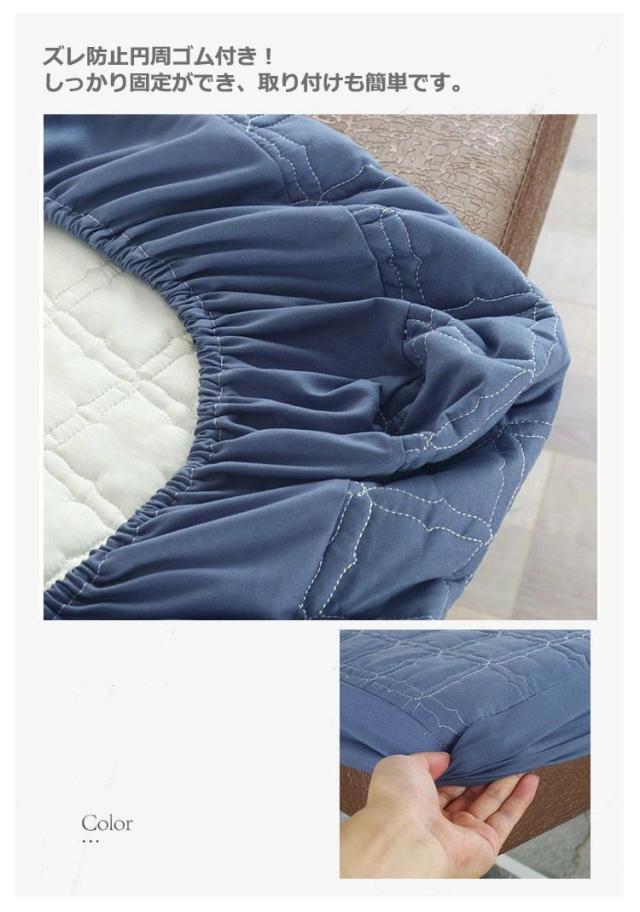| マッサージベッド用敷きパッド一体型ボックスシーツ 長さ185〜190×幅60〜80cm 顔の呼吸穴が付いています。 ほどよい厚みの中綿を充填して、ふんわり心地よい寝心地を実現しました。普通のボックスシーツより厚くて、柔らかさと反発性を兼ね備えたパッド一体型ボックスシーツです。 ズレ防止円周ゴム付き!しっかり固定ができ、取り付けも簡単です。 耐久性の高い生地ソフトな肌ざわりが特徴です。汗の季節も冷える季節もオールシーズン活躍してくれます。 | |