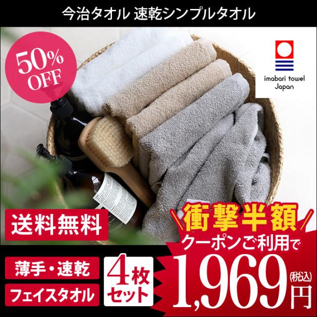 今治タオル フェイスタオル 速乾シンプルタオル 4枚セット 約34×80cm タオル 薄手 吸水 速乾 ギフト まとめ買い 日本製 送料無料