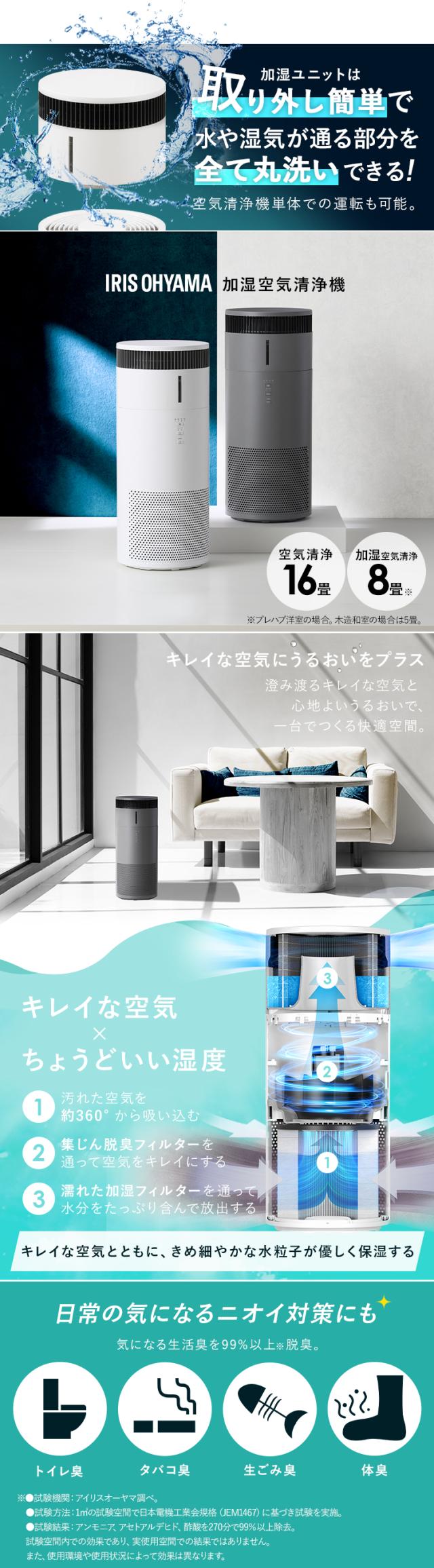 \1,000円OFFクーポン!~12/12 15:59/空気清浄機 16畳 単機能空気清浄機 加湿空気清浄機 小型 送料無料 加湿 気化式 加湿器 空気清浄 湿度 保湿 花粉 ホワイト グレー ベージュ タイマー お手入れ簡単 おやすみモード アイリスオーヤマ 安心延長保証対象