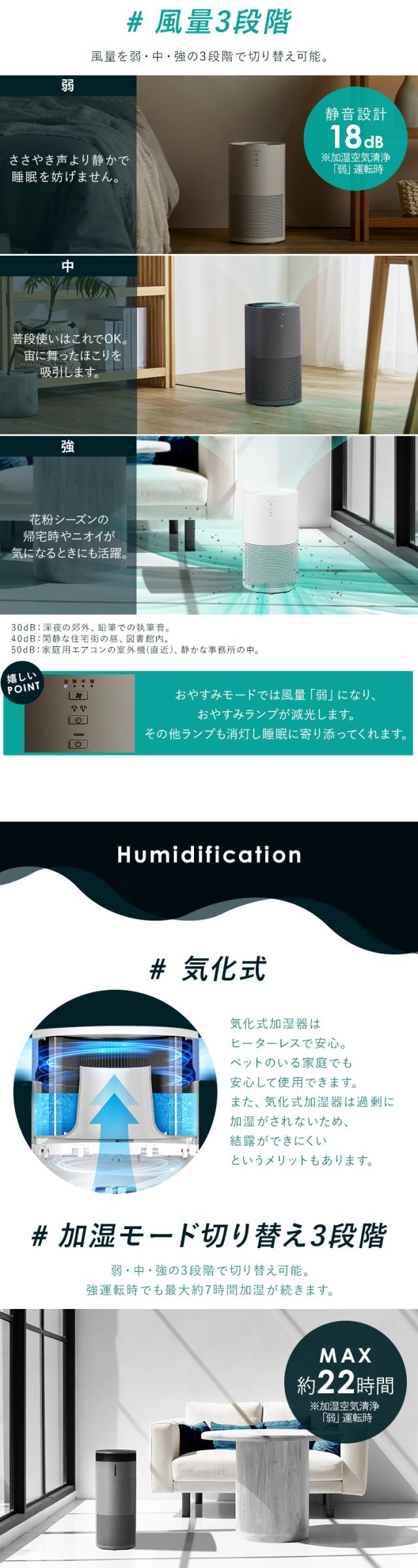 - 商品到着後、開封したら、正面にキズがあった。商品外観も他社と比べて光沢感はなく、弱そうな作りに思えました。使用してますが今の所、私には効果がない様に感じられます。他メーカーに比べ、加湿空気清浄機として...