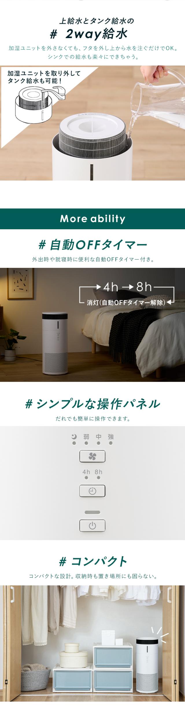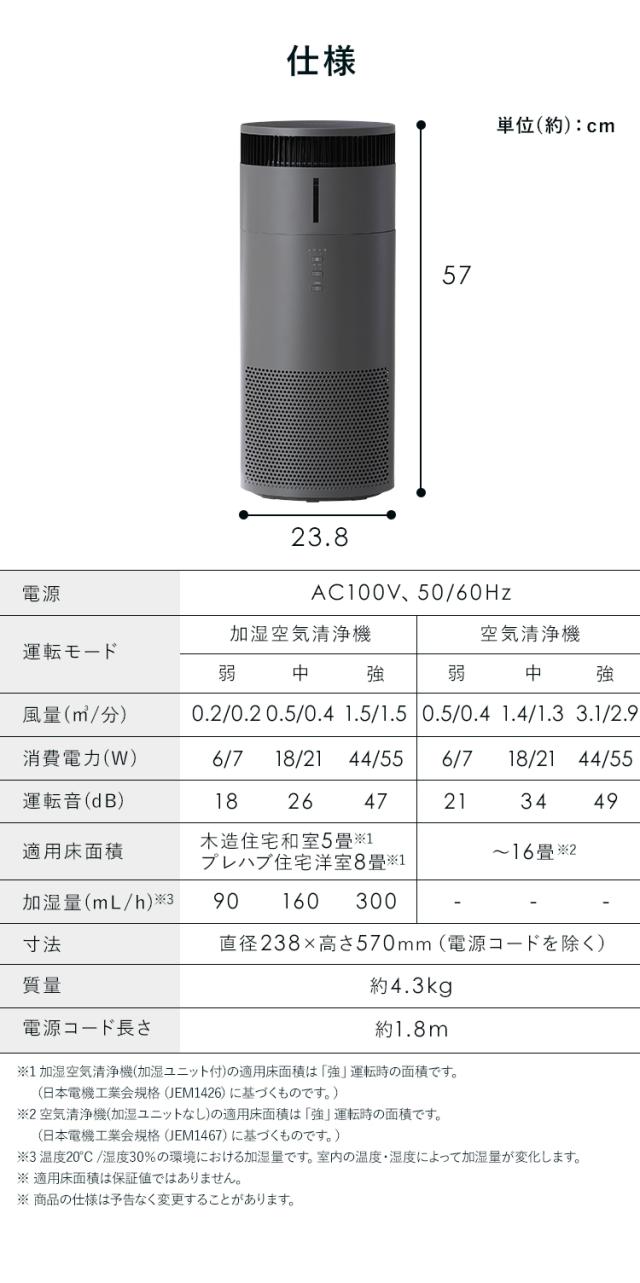 ※3 温度20℃/湿度30%の環境における加湿量です。室内の温度・湿度によって加湿量が変化します。