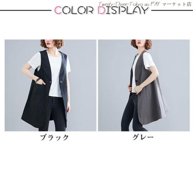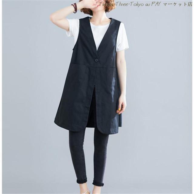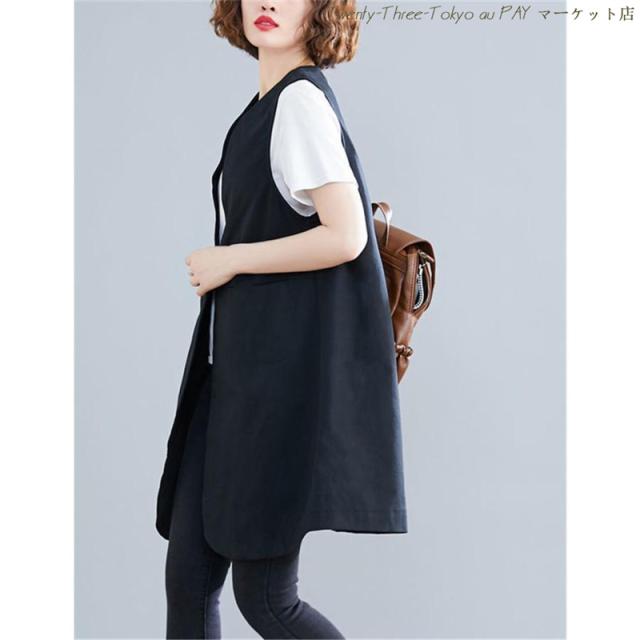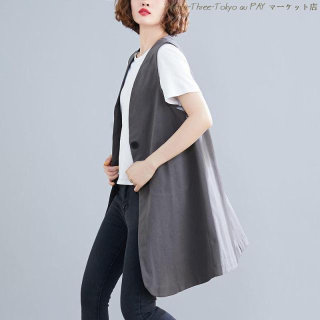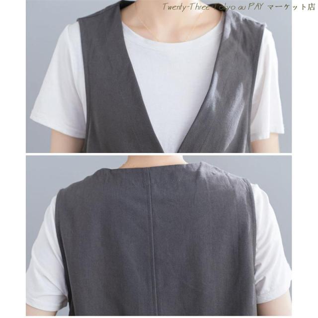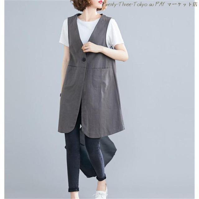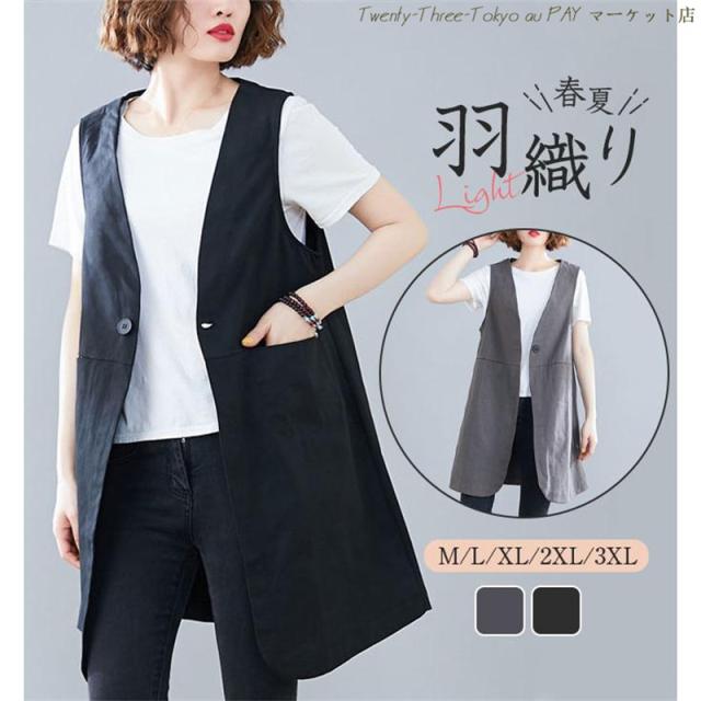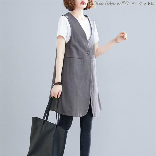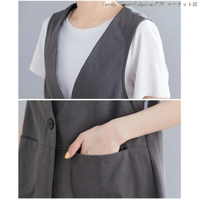 ジレ レディース ロングベスト サマーベスト リネン風 チョッキ 夏 ノースリーブ 薄手 前開き ゆったり 体型カバー トップス 大きいサイズ