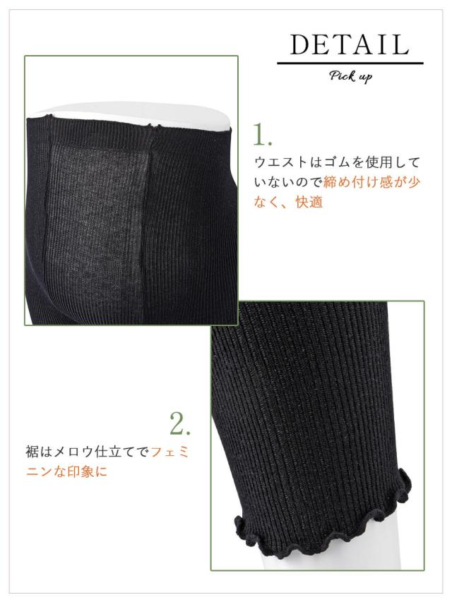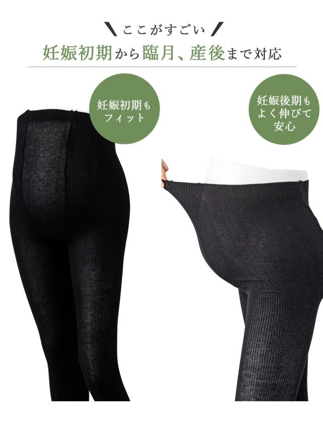 一般的なタイツよりも厚地で、あたたかいリブ編みのバルキータイプ。お腹をすっぽり包み込むような腹巻がついているので、ママとベビーを寒さから守ってくれます。マチを広めにとってあるので、臨月期のお腹もらくちん。ウエスト部分にもゴムを使っていないから、面でフィットして快適な履き心地です。
