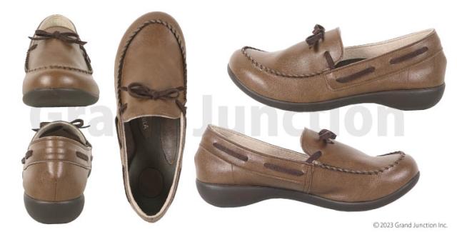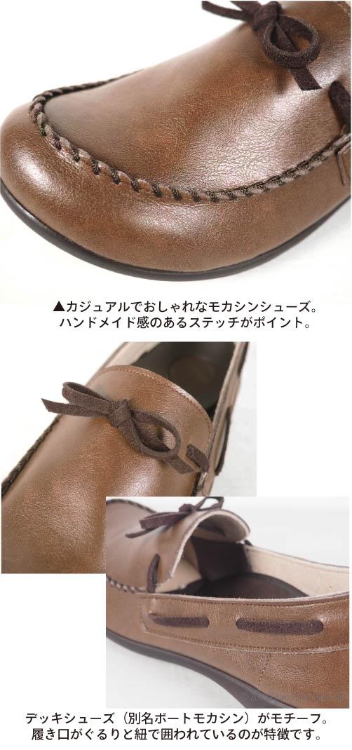 ■デッキシューズがモチーフのデザイン。ハンドメイド調のステッチやリボンの装飾が、カジュアルな中にもお洒落な印象を与えます。