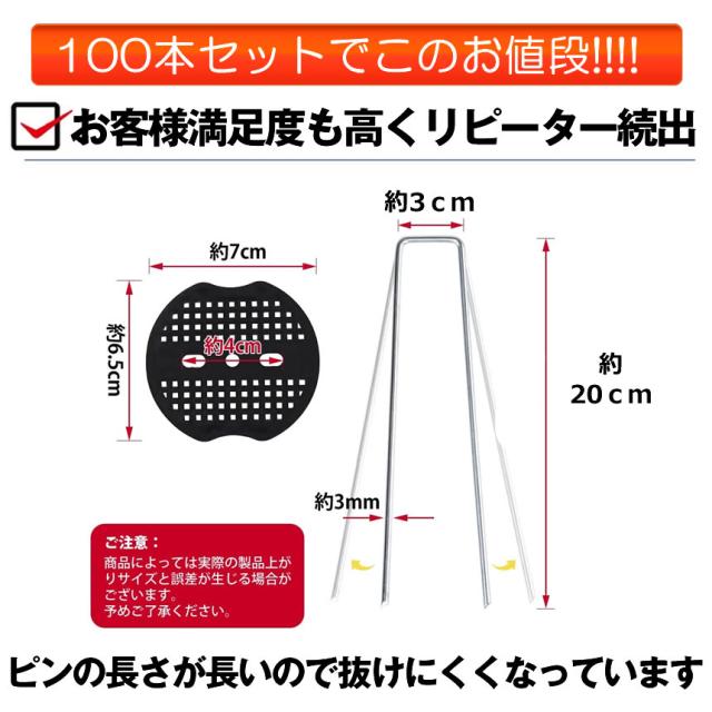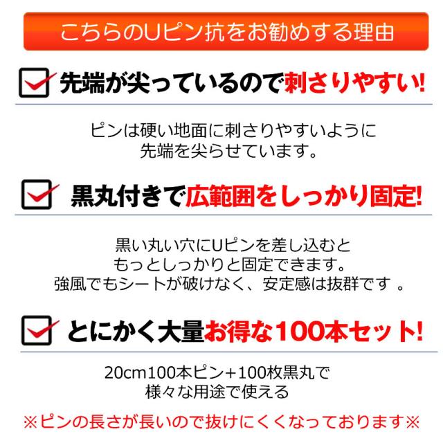 防草シート ピン Uピン杭 黒丸付 固定ピン 除草シート 100本 防そうシート 防そうしーと 固定用 固定 人工芝 おさえピン 押さえピン 20cm
