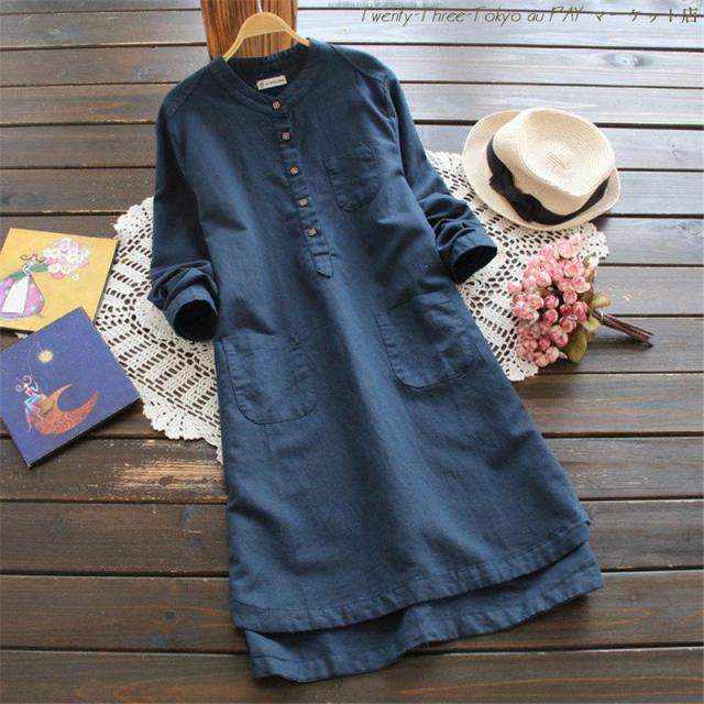 チュニック ロングシャツ シャツ レディース リネン風 シャツワンピース 体型カバー ブラウス 着痩せ 羽織 ゆったり 無地 春秋 長袖 おしゃれ
