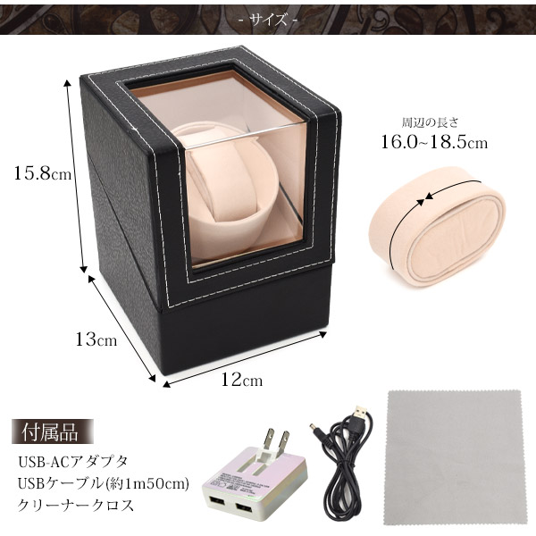 ワインディングマシーン 両方向回転式 自動巻き腕時計 1本 巻き用 2WAY(USB電源 / 電池式 )コードレス可 レザー インテリア オシャレ シンプル 両回転 左右 自動巻き時計 回転させる 自動巻き上げ機 腕時計 展示 収納 ウォッチワインダー 女性用 男性用 送料無料