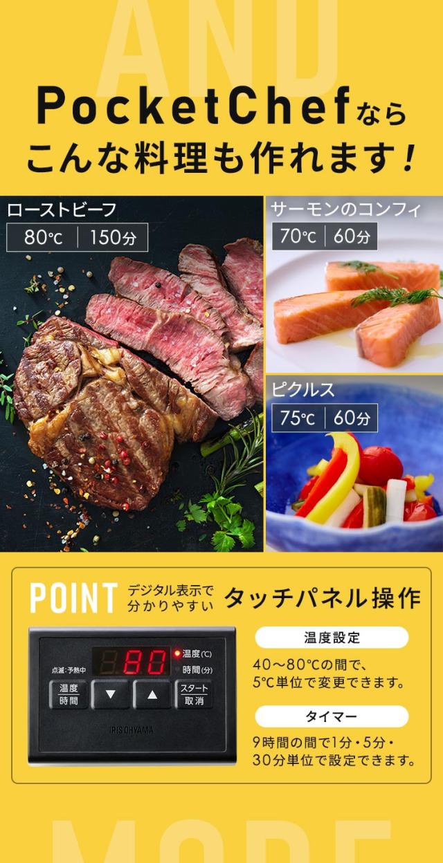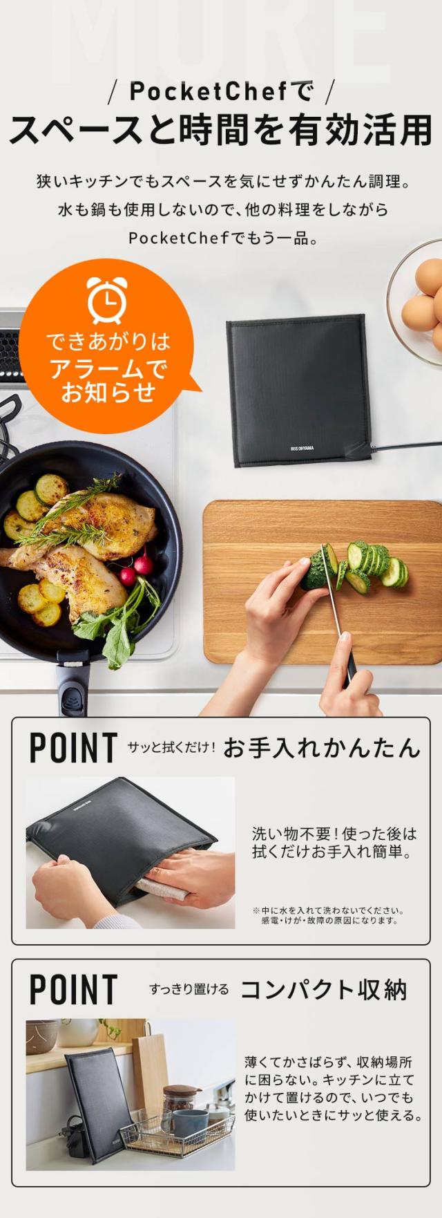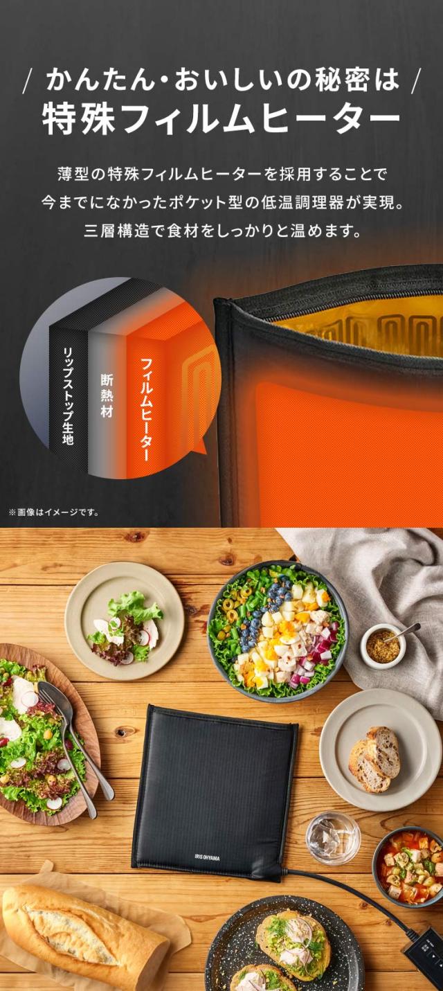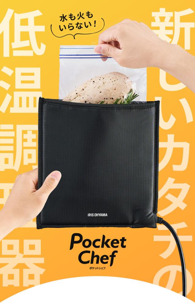 低温調理器 サラダチキン アイリスオーヤマ * ポケットシェフ PLTC-M01-B 袋型 低温調理器具 小型 レシピ 真空調理 スロークッカー 簡単 コンパクト お手入れ簡単 洗い物不要 火も水もいらない レシピ20種 PocketChef 一人暮らし 新生活