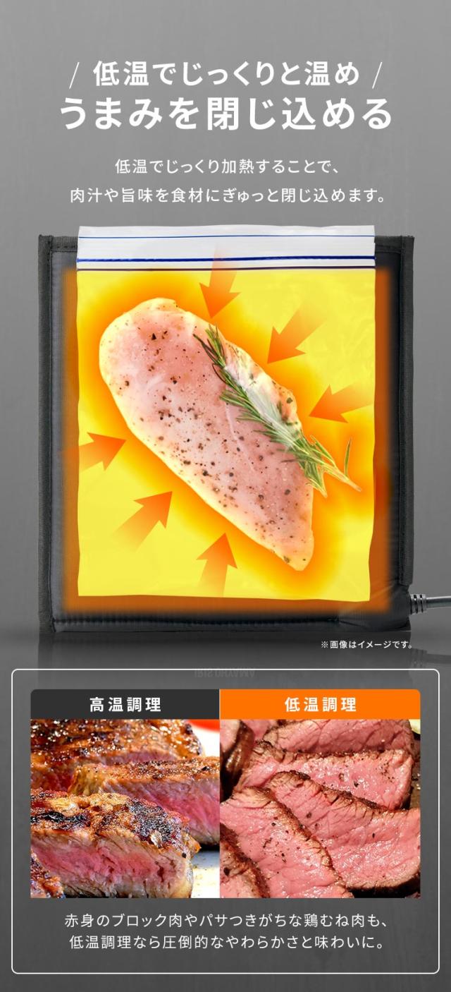 赤身ブロック肉やパサつきがちな鶏むね肉も、低温調理なら圧倒的なやわらかさと味わいに。