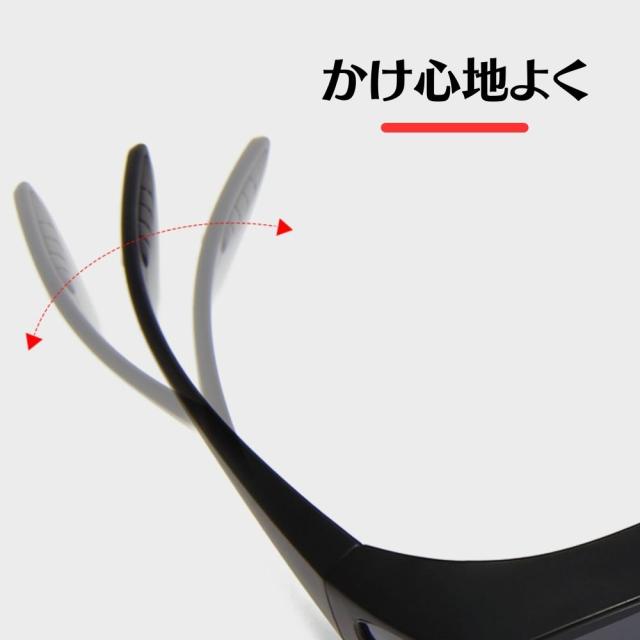 このオーバーサングラスは非常に軽量で、長時間の使用でも快適です。大きなサイズで、サングラスを掛けたまま既存のメガネやアイウェアの上から装着できるため、便利です。
