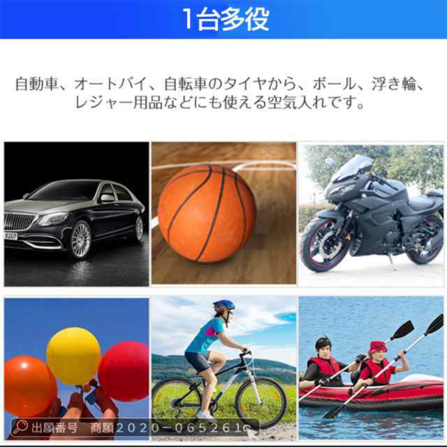 | 用途 | ◆車、バイク、電気自動車、自転車、ボール |