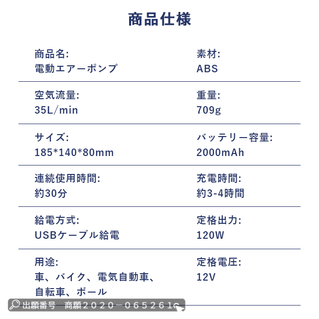 | 充電 | ◆定格出力:120W ◆定格電圧:12V ◆充電時間:約3-4時間 ◆連続使用時間:約30分 ◆給電方式:USBケーブル給電 |