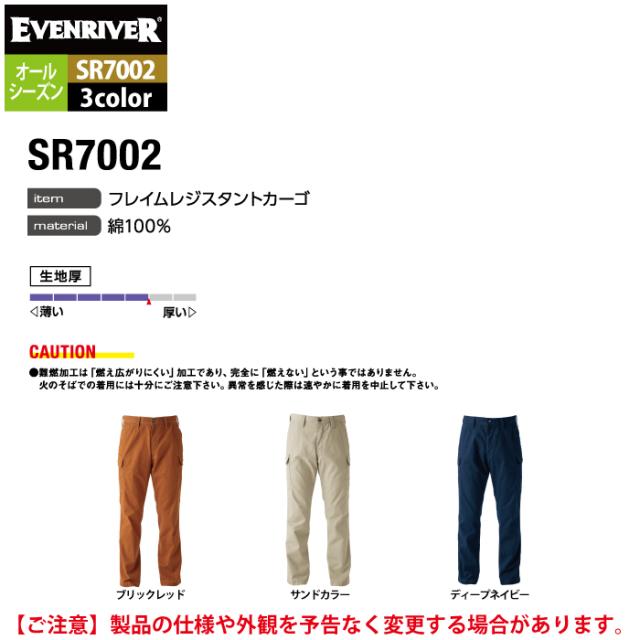 イーブンリバー EVENRIVER 作業服 SR7002 フレイムレジスタントカーゴ 100 作業着 オールシーズン 秋冬
