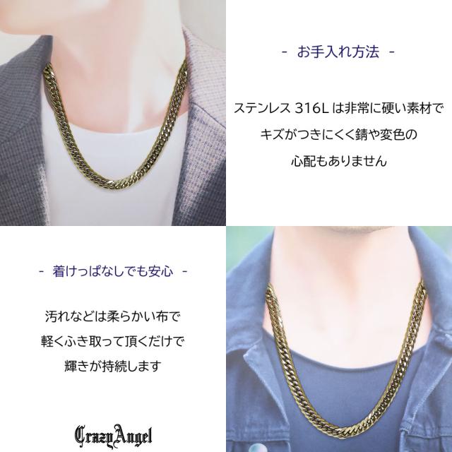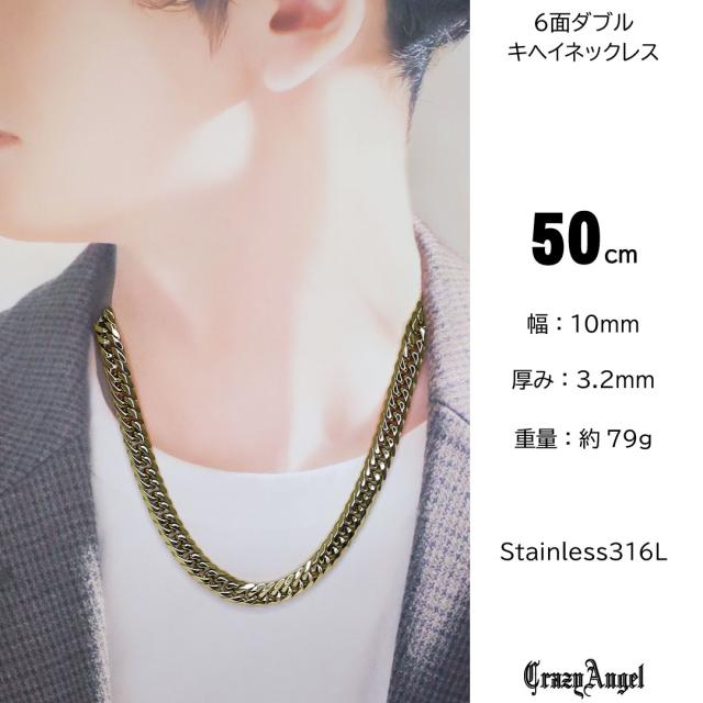 キヘイネックレス キヘイチェーン 喜平ネックレス 喜平チェーン メンズ ステンレス スティール 6面 6面カット 50cm 10mm 太め ゴールド 金属アレルギー 対応