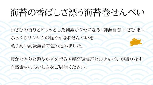 【リピしたくなるわさび味のおせんべい】海苔とわさびの相性抜群の贅沢な海苔巻きお煎餅!わさび味が好きな方には絶対食べていただきたいお煎餅