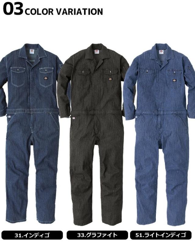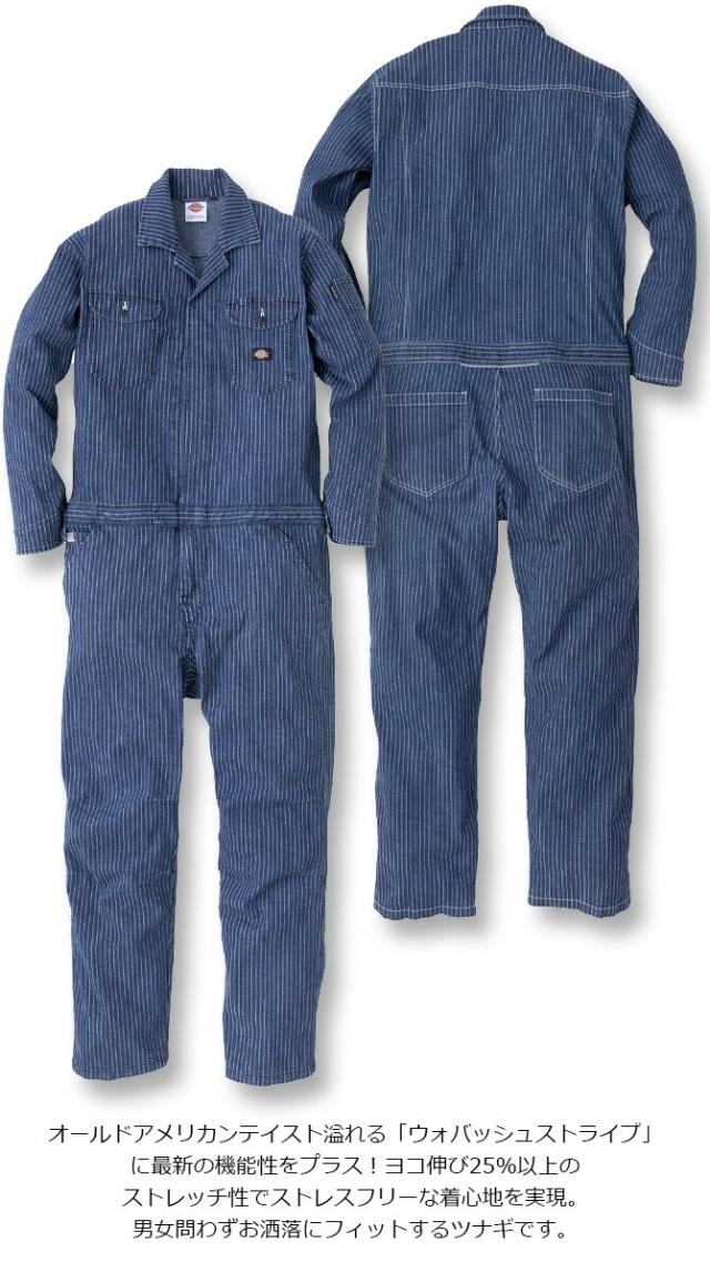 ディッキーズ 長袖 ストレッチ ウォバッシュ ツナギ D-696 メンズ レディース Dickies オールシーズン オールインワン カバーオール ワークウェア アウトドア 作業服 作業着