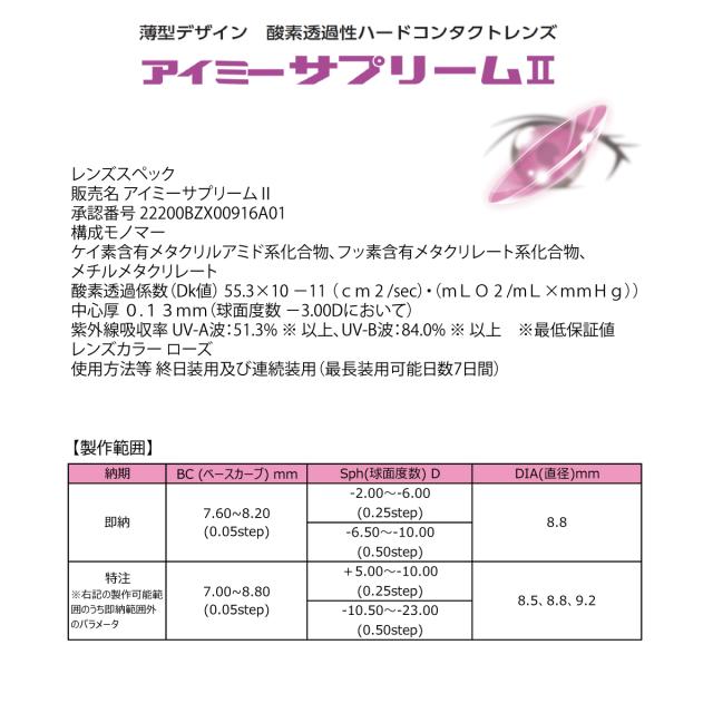 保証付き アイミー サプリーム2 片眼分1枚 ポスト便 送料無料 ハードコンタクトレンズ ハード aime