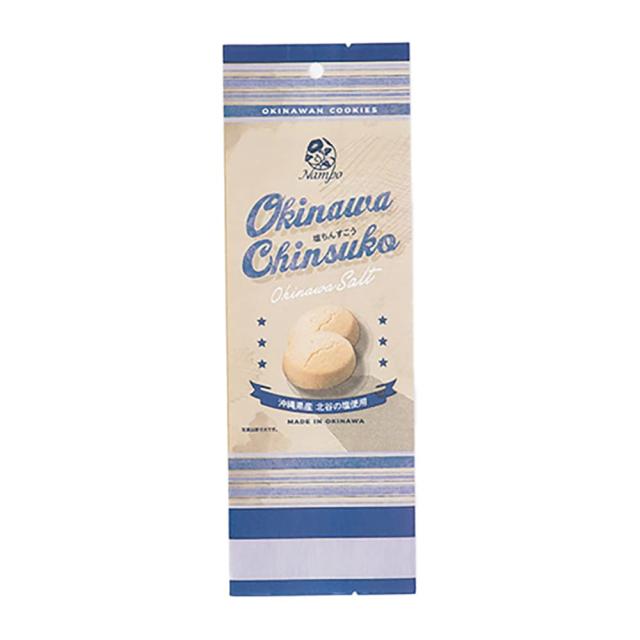 |北谷の塩入りのちんすこう。おしゃれな紙パッケージに仕上がっており、手土産にも最適な大きさです。原材料・・小麦粉(国内製造)、砂糖、食用動物油脂、ショートニング、食塩(沖縄県製造)/膨張剤、香料、(一部に小麦を含む)賞味期限・・製造日から90日沖縄の伝統的銘菓「ちんすこう」に、沖縄県北谷沖の海水をじっくり40時間煮詰めて作られた「ちゃたんの塩」を練り込み、1口サイズにまぁるく焼き上げました。ほんのり塩味が甘さをひきしめています。ブランド名:ナンポー|【お買い上げ前にお読みください】※パッケージデザイン等が予告なく変更される場合もあります。
