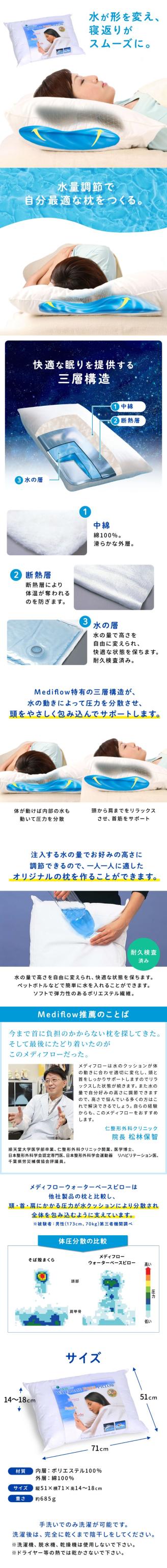 【正規品】ウォーターベース ファイバーピロー 枕 高さ調節 マクラ 水まくら 頸椎 安眠 枕 まくら ウォーターベース 快眠枕 ピロー 体圧分散 頸椎症 首こり 安眠グッズ ストレートネック いびき防止 寝返り 睡眠 快眠グッズ Mediflow メディフロー
