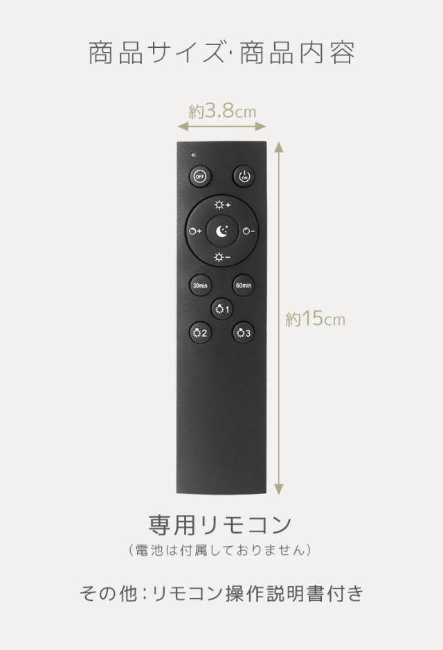 | 機能 | 無段階調光設定 無段階調色設定(昼光色|昼白色|電球色) 常夜灯ボタン付き メモリー機能 おやすみタイマー ペアリング機能 |
