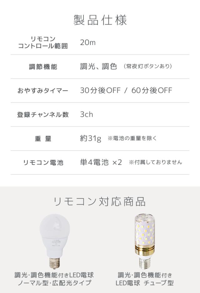 LEDリモコン 調光リモコン リモコン LED電球 電池式 E17 6W 調光 調色 電球色 白色 昼白色 LED LEDライト タイマー メモリー機能 チャンネル 照明 節電 LEDライト LEDランプ 省エネ 簡単操作 新生活