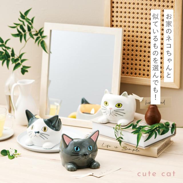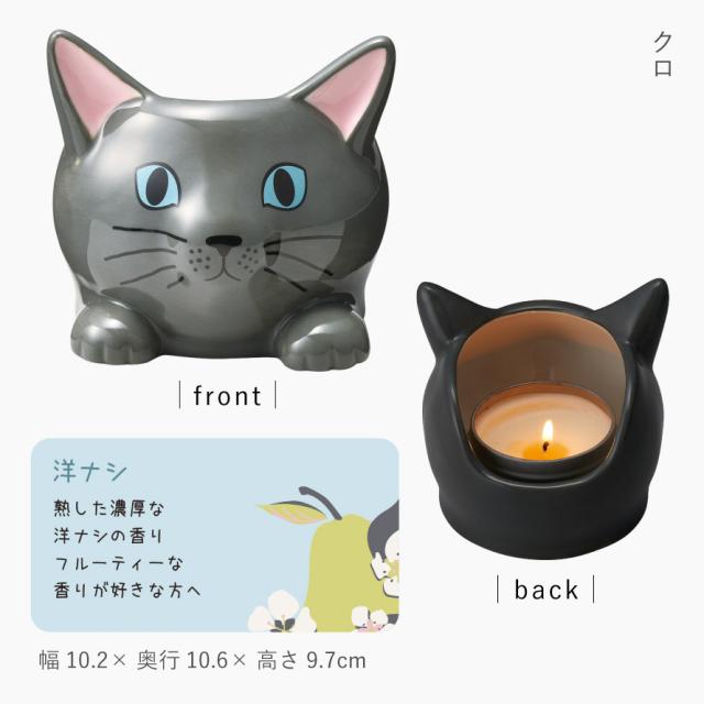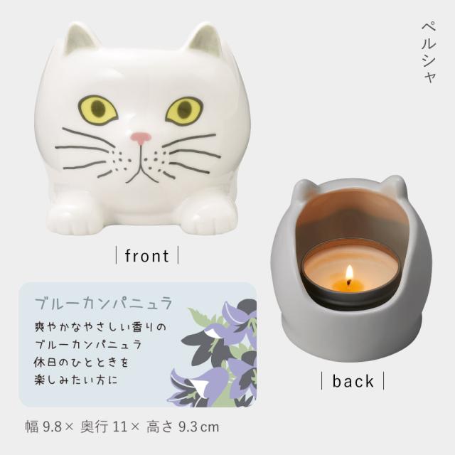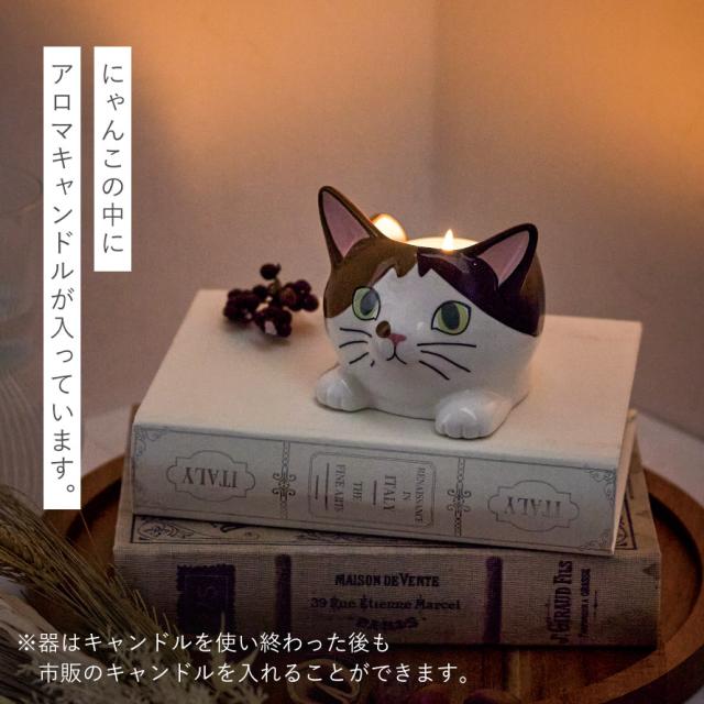 きょとんとしたお顔のにゃんこ達にまったり。やさしい香りのアロマキャンドル。ちょこんと座ったネコちゃん達の中にアロマキャンドルが入った、癒しのキャンドルホルダー。