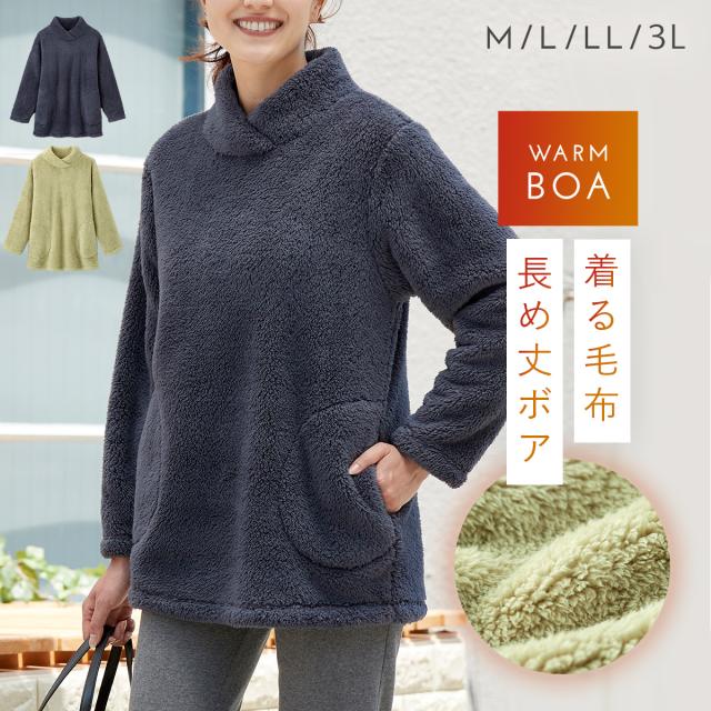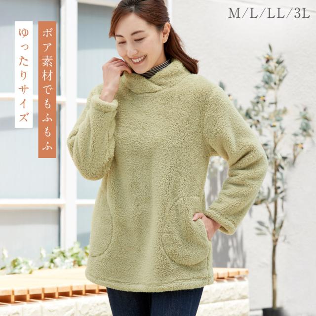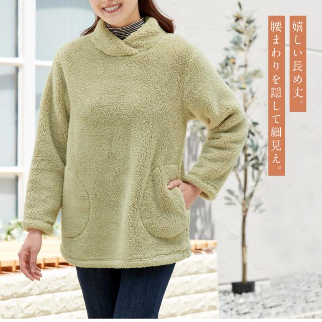 ボア プルオーバー 毛布 トレーナー レディース 外出 できる ルームウェア 冬 もこもこ 長袖 重ね衿ボアプルオーバー 暖か あったか 秋 カジュアル 50代 60代 70代 ミセスファッション 婦人服 ゆったり 大きいサイズ 体型カバー 母 ポケット付き
