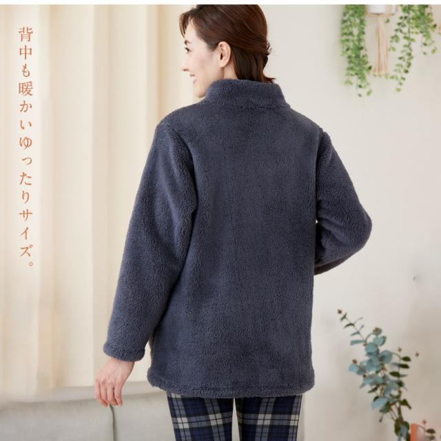 お腹まわりが隠れる丈で体型カバー。背中も暖かいゆったりサイズ。