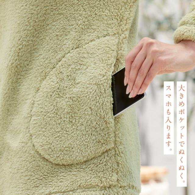 共布のポケットで手もぬくぬく。スマホも入る大きめポケットです。