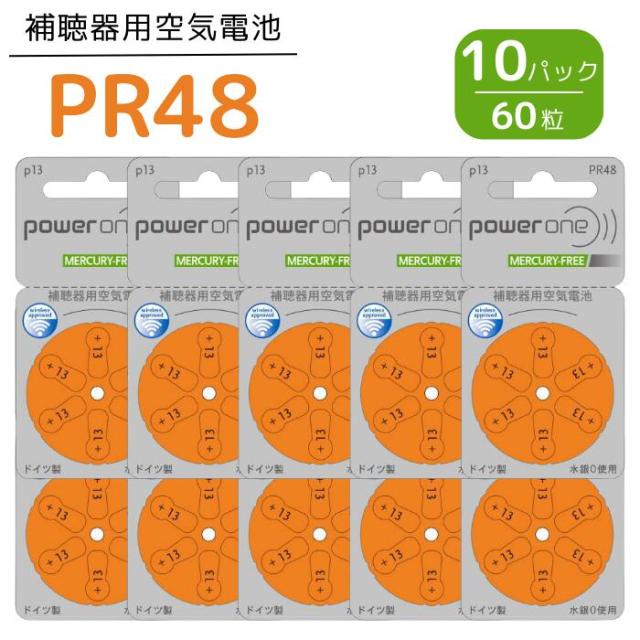 補聴器 電池 PR48 (13) オレンジ 10パック(60粒) パワーワン 普通郵便 送料無料 無水銀タイプ 空気電池 空気亜鉛電池 power one 世界共通 補聴器各社対応 補聴器電池 ボタン バッテリー
