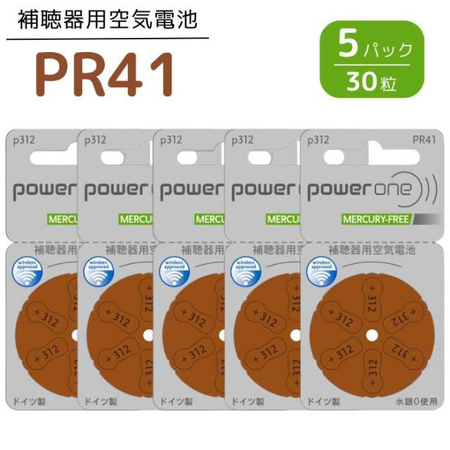 補聴器 電池 PR41 (312) 茶 5パック(30粒) パワーワン 普通郵便 送料無料 無水銀タイプ 空気電池 空気亜鉛電池 power one 世界共通 補聴器各社対応 補聴器電池 ボタン バッテリー