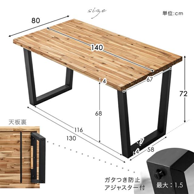 ダイニングテーブル 4人掛け 140 × 80 長方形 天然木 単品 4人 4人掛 4人用 テーブル ダイニング ダイニングテーブル テーブル単品 テーブルのみ 食卓 食卓テーブル 140cm 木製 木目 おしゃれ 黒脚 アカシア 北欧 [超大型商品]