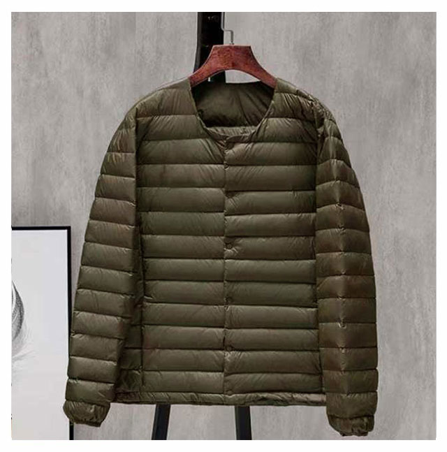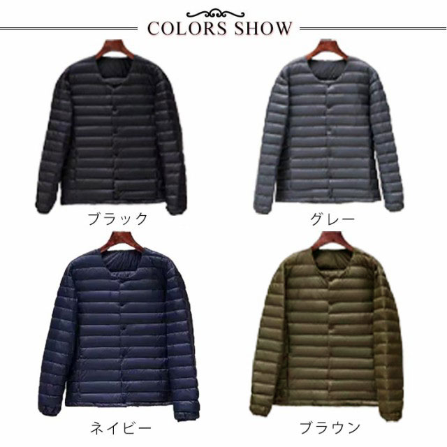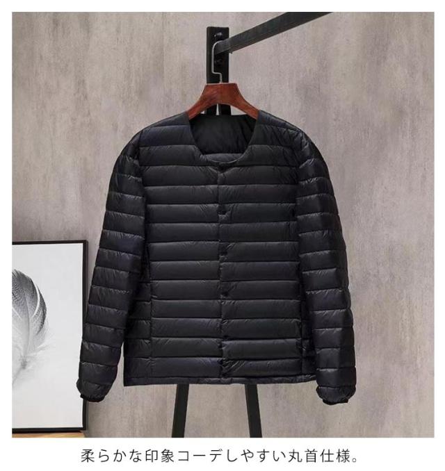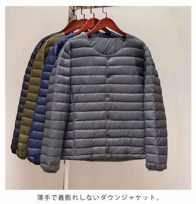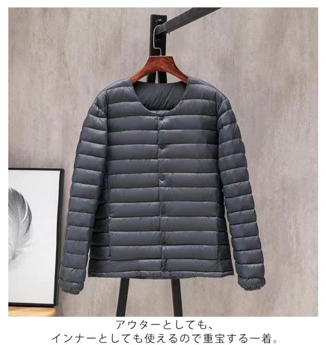 インナーダウン 大きいサイズ ダウンジャケット インナー ワークマン 薄手 保温 ノーカラー 軽量 ジャケット 防寒 ライトダウン アウター Vネック ビジネス アウトドア キャンプ メンズ