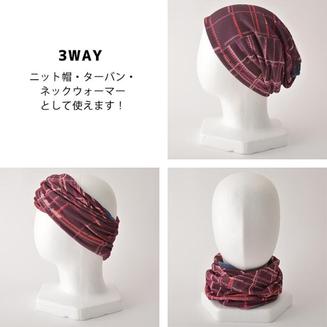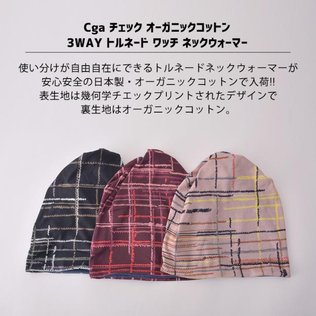 レディース メンズ オールシーズン 秋冬 冬用 春夏 裏地綿100 帽子 ニット帽 | 日本製 Cga チェック オーガニックコットン 3WAY トルネード ワッチ ネックウォーマー nw-cga