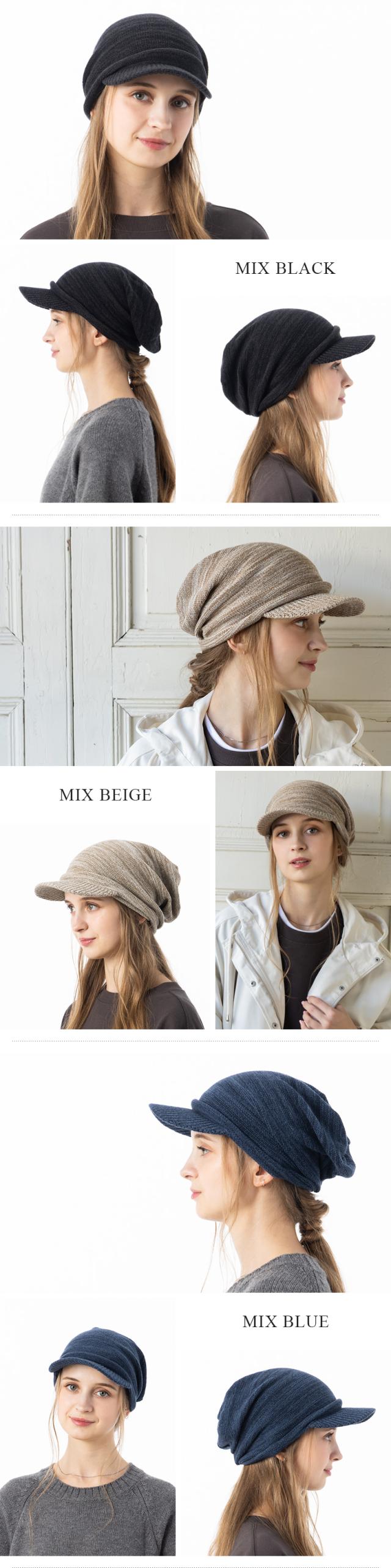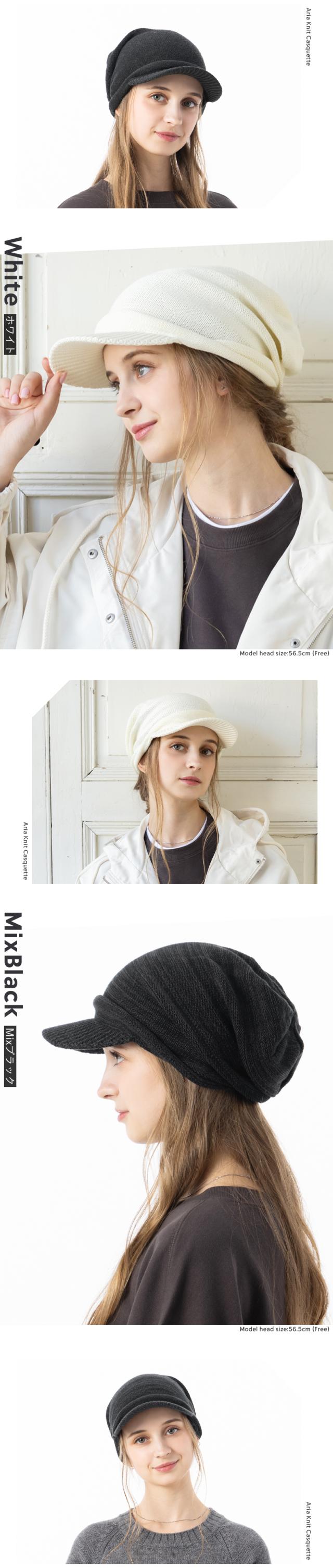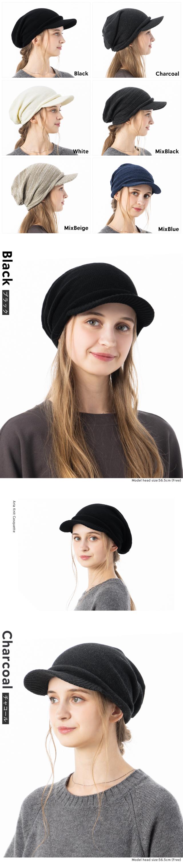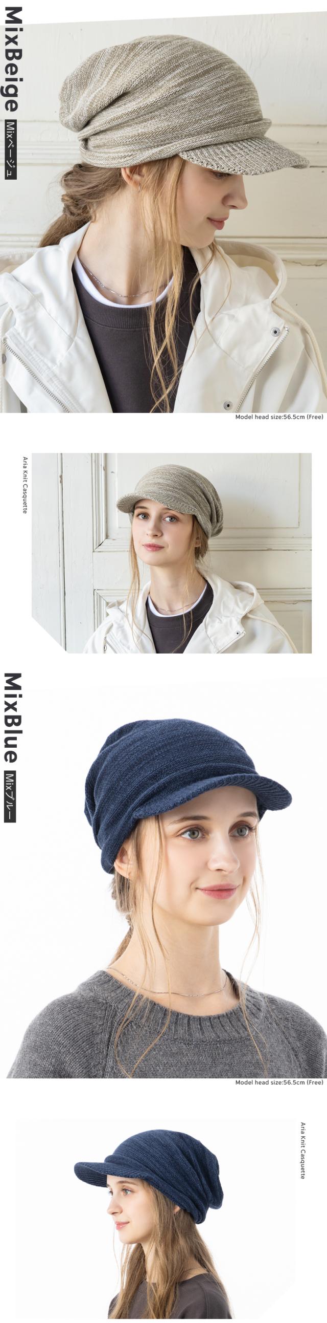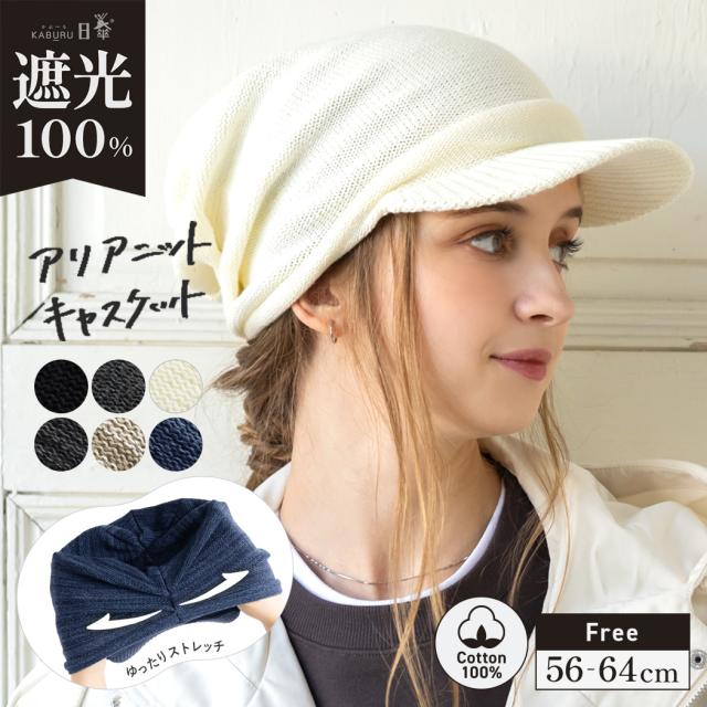アリアニットキャスケット(214)帽子 レディース 大きいサイズ 防寒 秋 冬 秋冬 完全遮光 遮光100% つば部分 UVカット ニット ニットキャスケット