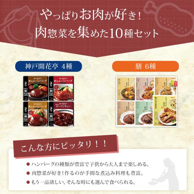 お歳暮 レトルト食品 常温 おかず 詰め合わせ 肉 惣菜 10種10食 セット 【 送料無料 沖縄以外】 国分 tabete 膳 神戸開花亭 レトルト お惣菜 洋食 和食 ハンバーグ シチュー お取り寄せ レンジ 湯煎 備蓄 保存食 2025 お年賀 帰省 ギフト