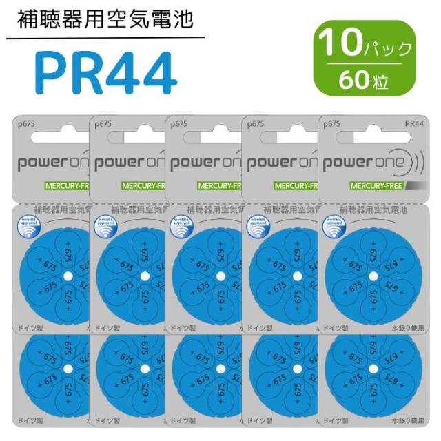 補聴器 電池 PR44 (675) 青 10パック(60粒) パワーワン 普通郵便 送料無料 無水銀タイプ 空気電池 空気亜鉛電池 power one 世界共通 補聴器各社対応 補聴器電池 ボタン バッテリー