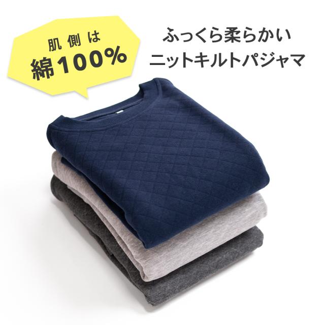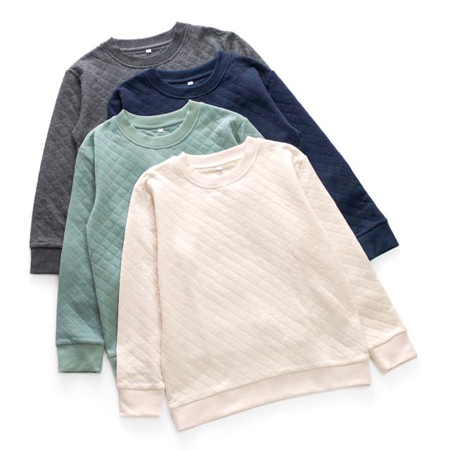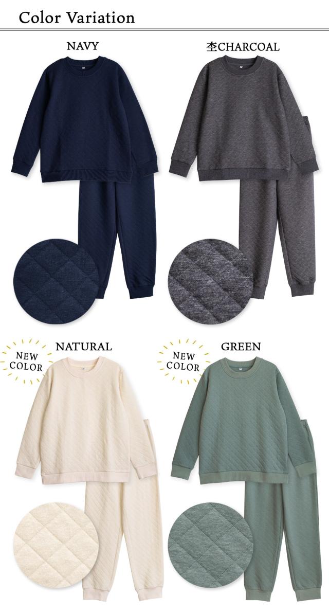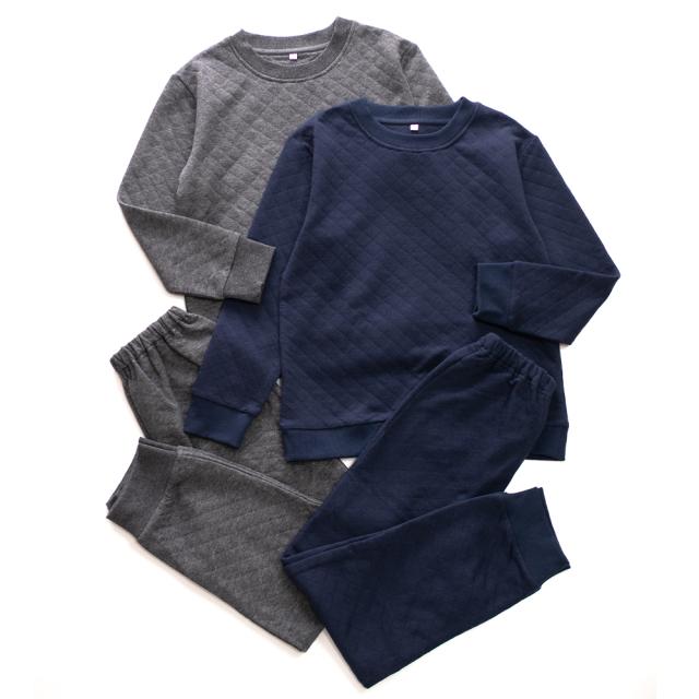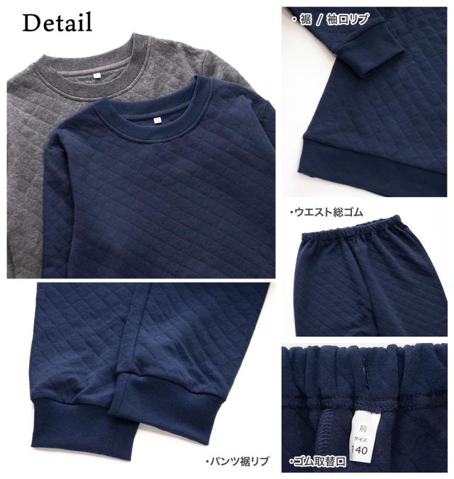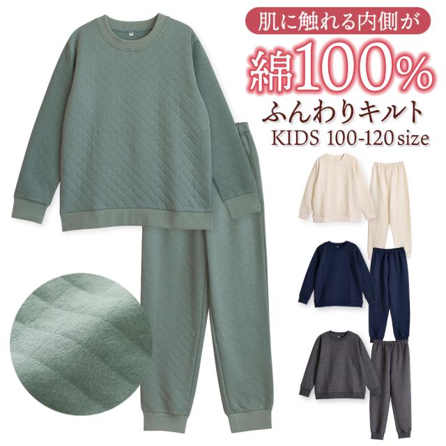パジャマ キッズ 男の子 女の子 男女兼用 内側が綿100% 長袖 冬 ふんわり柔らかなニットキルト ダイヤキルト セットアップ スウェット上下 リブ仕様 ネイビー ナチュラル グリーン 杢チャコール 130 140 150 160 親子 おそろい 79244