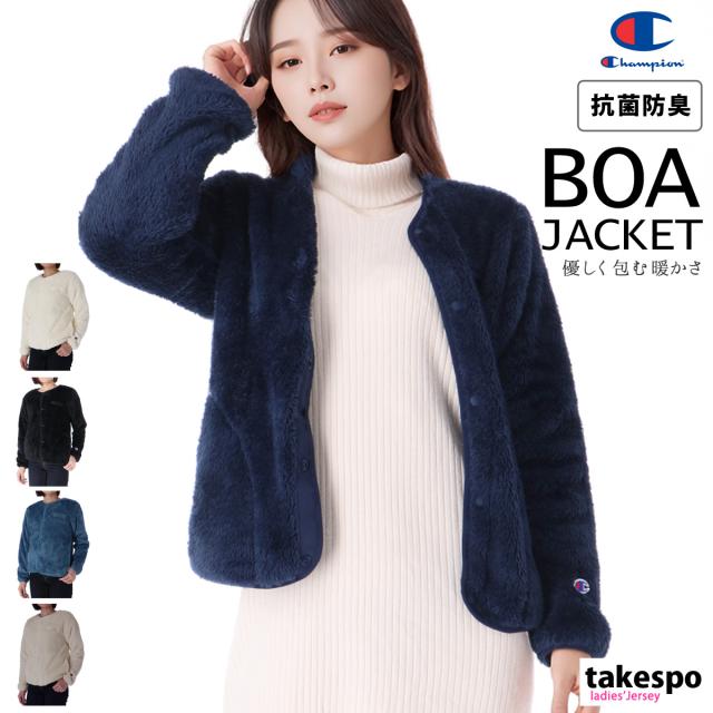 チャンピオン ボアジャケット レディース ブランド Champion 暖かい フリース ふわふわ ボア ノーカラー 抗菌 防臭 ボタン