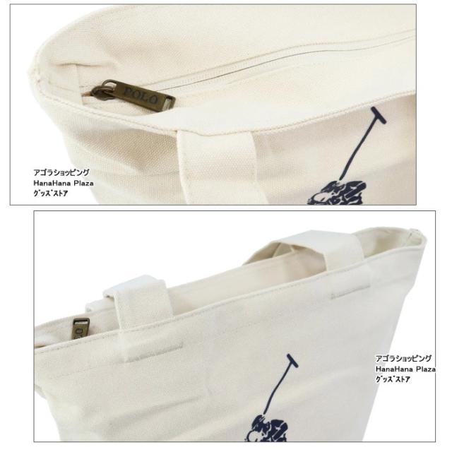 | 【特 徴】 | 中央にポロモチーフをプリントしたスタンダードなデザイン。 トートバッグ!肩から下げてお使いいただける便利な仕様です。 上部がファスナー開閉になっていますので、 中身がざっくりと見えないのも嬉しい仕様です。 |