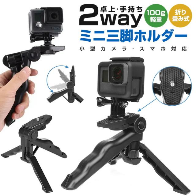 ミニ三脚 持ち運び便利 軽量 ホルダー シンプル 使いやすい ハンディグリップ 卓上型三脚 使用ラク カメラスタンド 小型 軽量 オシャレ 折り畳み式 ストラップ付き 手持ち