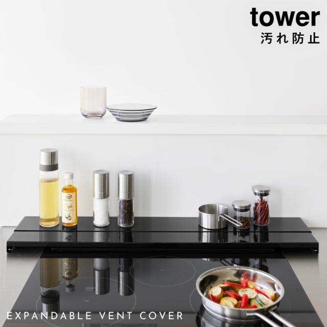 排気口カバー 75cm フラット 排気口カバー フラットタイプ コンロカバー タワー 黒 白 山崎実業 奥行伸縮排気口カバー タワー 75cmコンロ用