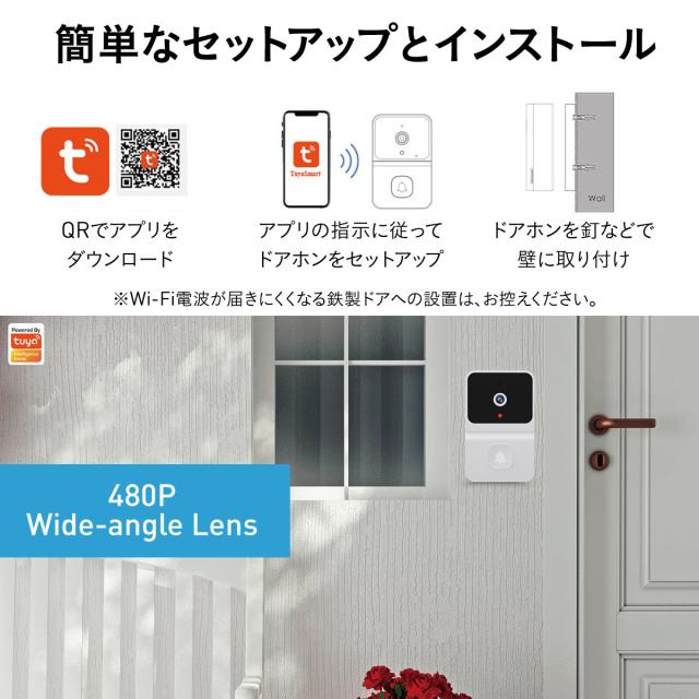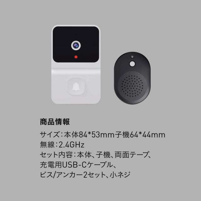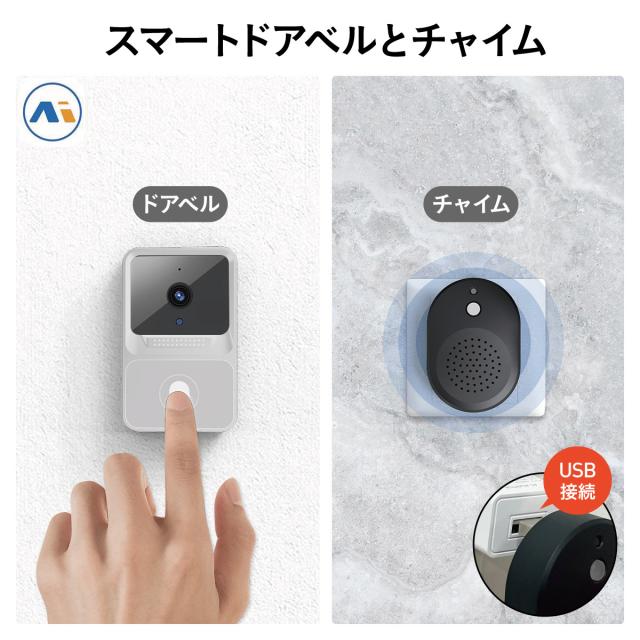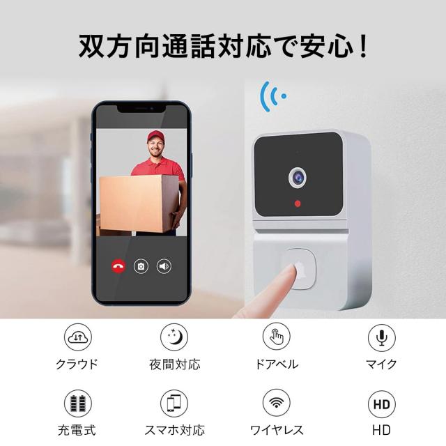 スマートドアベル ドアホン ワイヤレス スマホ 充電式 インターホン カメラ wi-fi s-doorbell