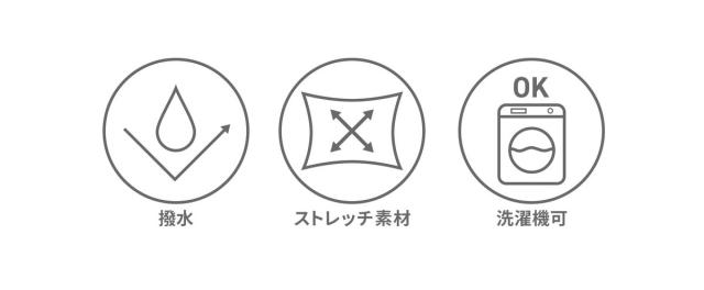 アメリカのインビスタ社が手掛ける高機能素材、コーデュラ糸を採用。急な天候の変化にも対応した撥水機能、普段の生活において動きやすさを考慮したストレッチ性、ご家庭での洗濯が可能なイージーケア性など日常生活におけるストレスフリー機能も備えています。
