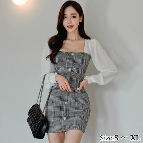 【グラシア】 キャバ ドレス キャバドレス ワンピース ミニドレス カット シルエット タイト フェミニン レトロ 可愛い ミニ丈 透け感 ブラック S M L XL